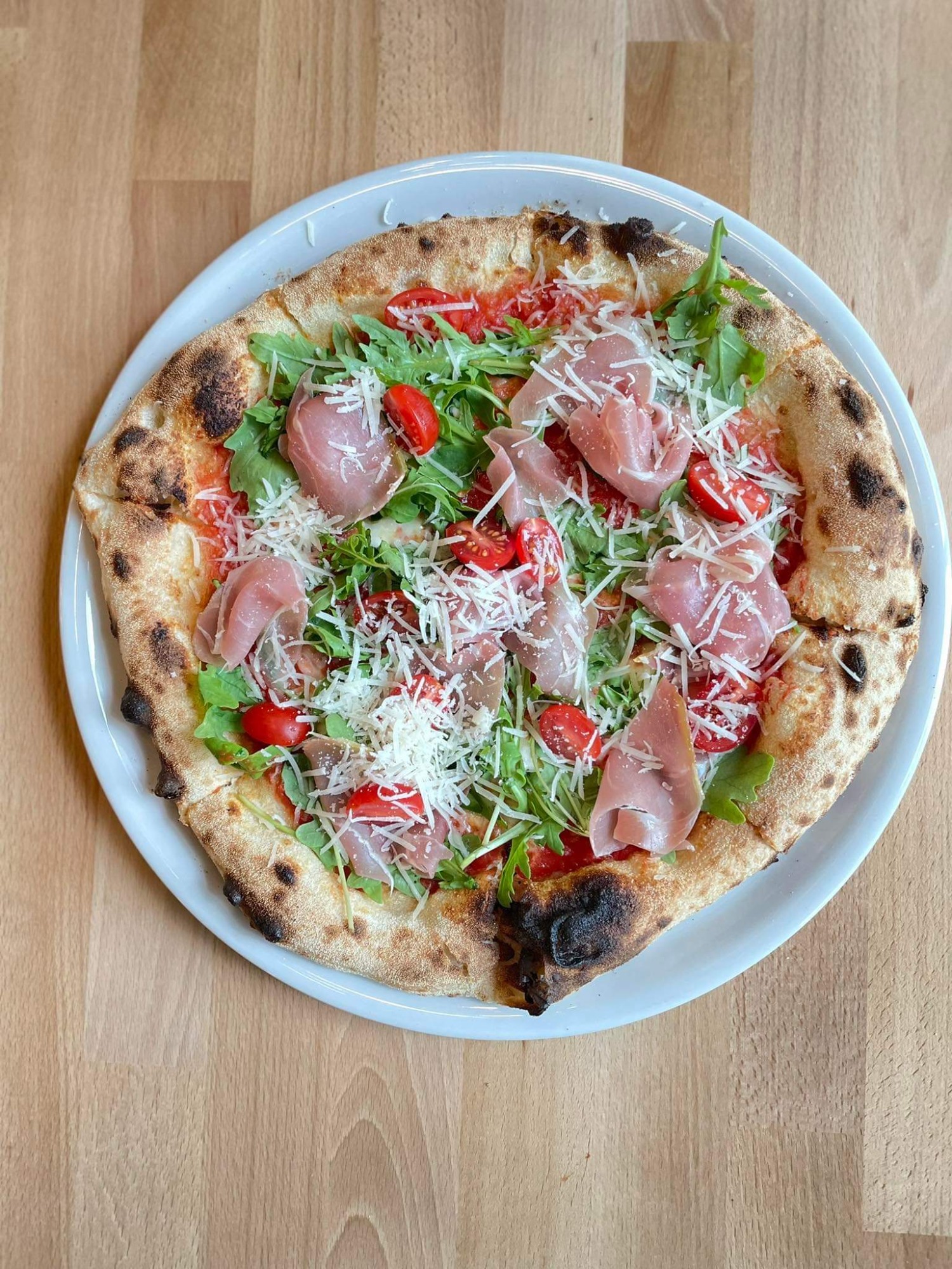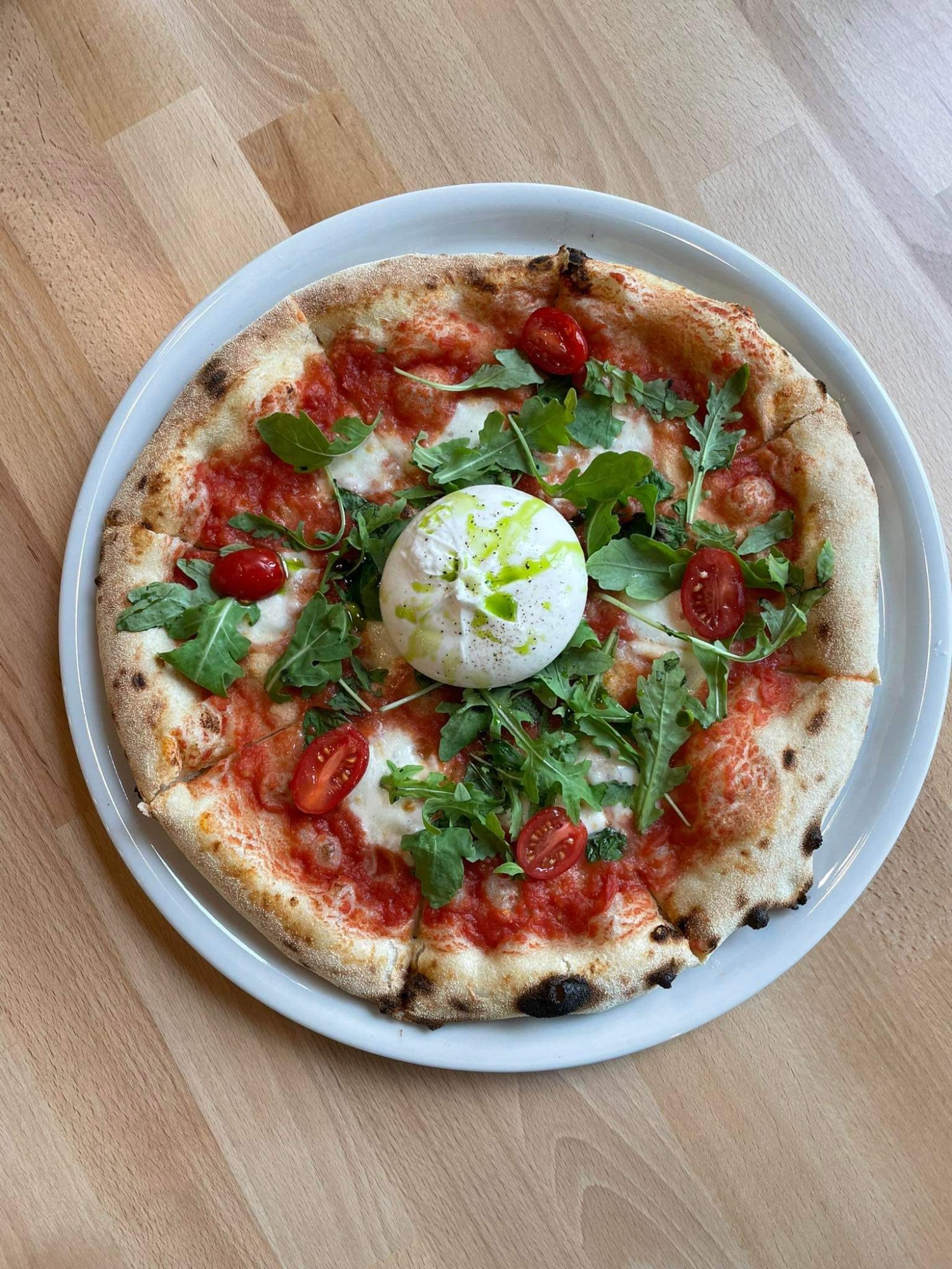 pizza w stylu neapolitańskim, która podajemy jest tworzona z najlepszych, oryginalnych włoskich produktów: mąki typu 00, pomidorów san marzano, mozzarelli fior di latte oraz z dodatkiem świeżych liści bazylii.